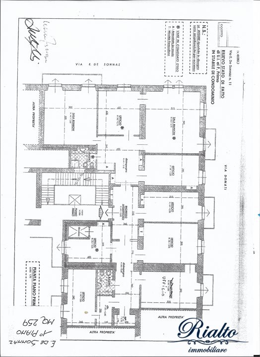 Al piano primo di un immobile fine '800,questo alloggio ora adibito ad ufficio si compone di 9 camere ,due bagni,cantina, soffitta e 5 balconi serviti da ascensore e portineria.In posizione centrale è ideale per studio di professionisti.E' possibile il cambio di destinazione d'uso in residenziale uso abitazione.E' attualmente occupato da studio professionale e sarà libero nel 2030.